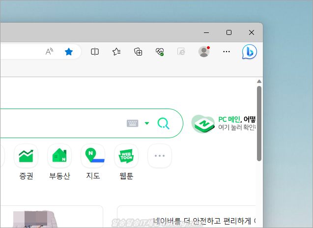 엣지 시작페이지 네이버 바뀌어져 나옵니다.
