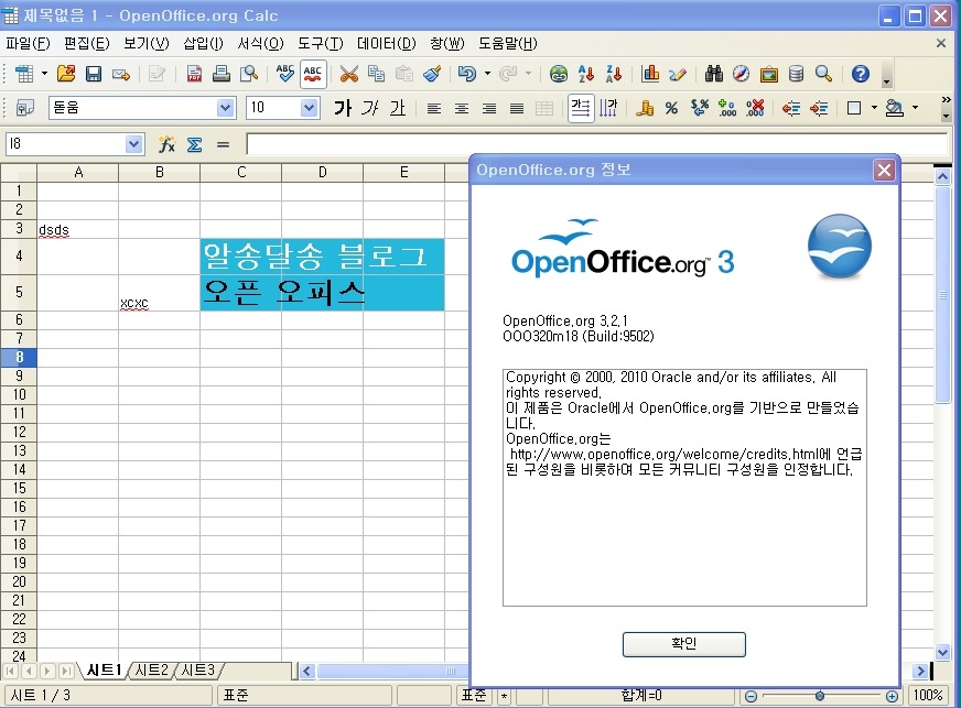 완전 무료로 제공하고 있는 오픈 오피스 3.2.1 버젼을 설치를 해보니