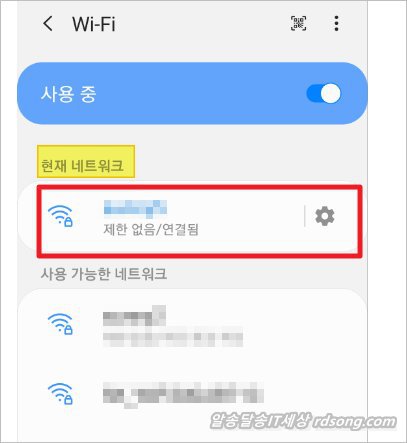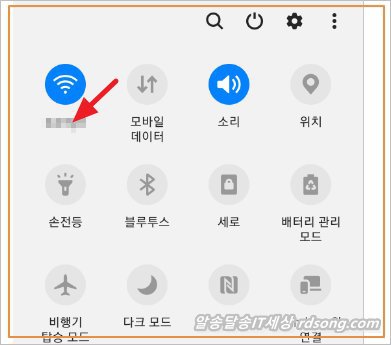 상단의 알림창을 내려 와이파이 이름을 터치 합니다.