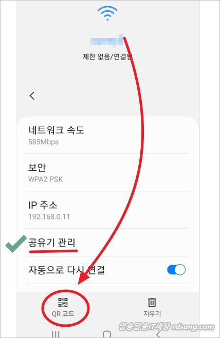 와이파이 qr코드 이미지 저장 또는 와이파이 qr코드 공유 기능도 있습니다.