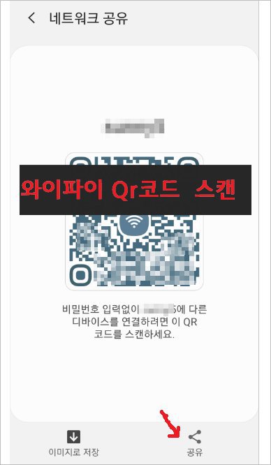 와이파이 qr코드 공유 - 유무선공유기의 와이파이 접속 된 스마트폰에 있는 wi-fi qr코드