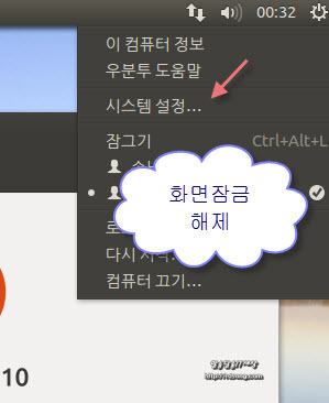 우분투 화면잠금 해제 하기