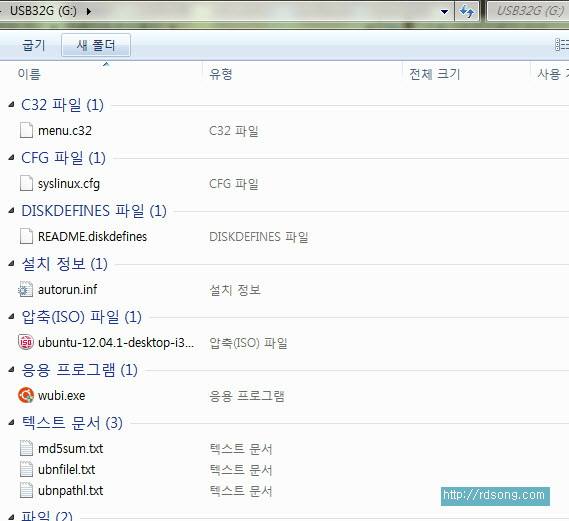 usb에 복사가 된 우분투 부팅파일들 상태는 아래처럼 보이고요 usb를 꽃고 wubi.exe를 눌러서 보면,설치화면이 보이고 , 우분투를 컴에 설치할 수도 있습니다
