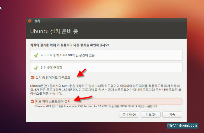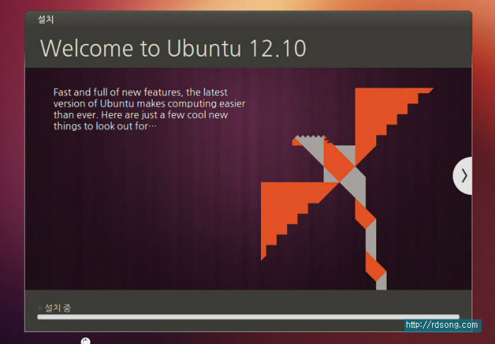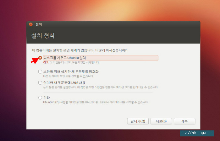 우분투 12.10 iso을 다운로드 하고 우분투 설치 들어갔습니다