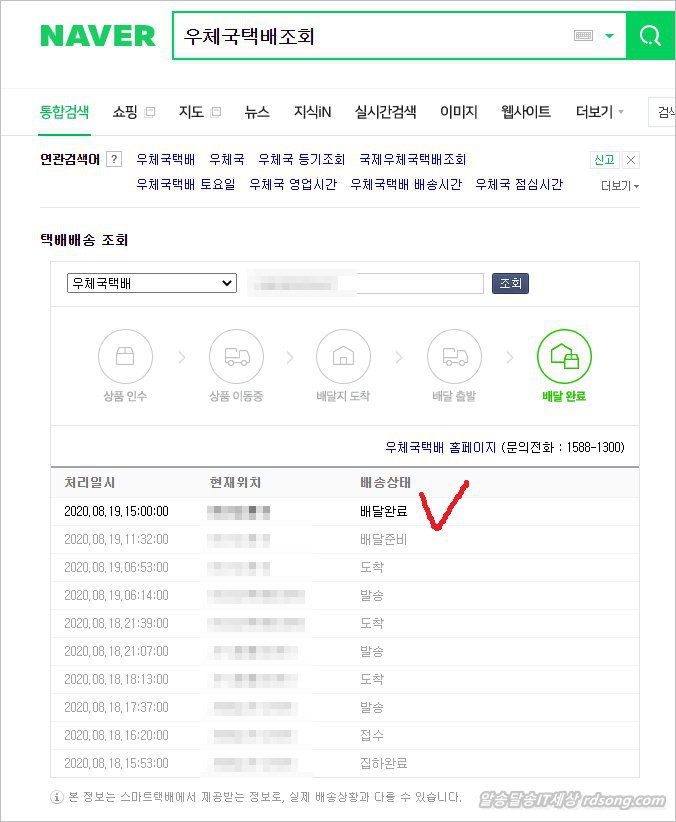 네이버 우체국 택배 배송 조회, 우체국 배송 조회