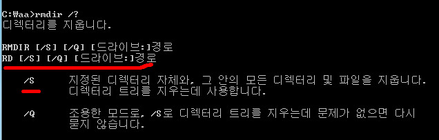 /S 지정된 디렉터리 자체와, 그 안의 모든 디렉터리 및 파일을 지웁니다.