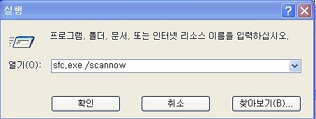윈도우에서 ‘시작’-‘실행’의 명령창에서 sfc.exe  /scannow 라고 입력을 해주면 된다