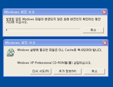 이유는 CDROR에 삽입된 원본 XP의 시스템파일과 비교를 하여 변경된 파일을 발견하면