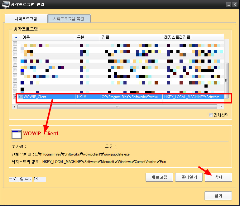 프로그램을 설치하고 난 후 지워주고 나서도 이렇게 시작프로그램에 남아 있을 수도 있지요