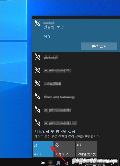 wi-fi 파란색으로 활성이 되어 있는데 이것을 클릭하면 됩니다.