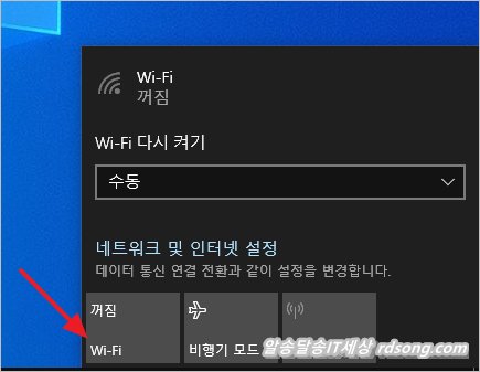 그러면 아래처럼 wi-fi 꺼짐으로 바뀌게 됩니다.