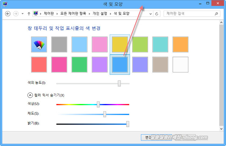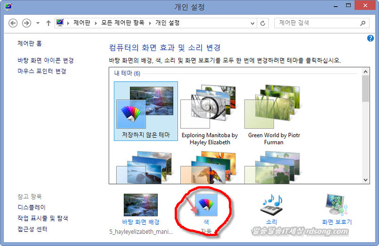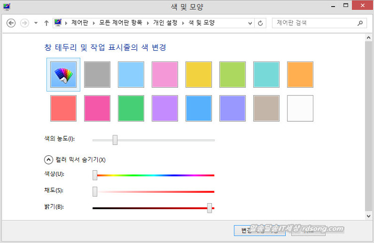 윈도우8.1 윈도우 창 테두리 색상 및 작업표시줄 색상 변경방법