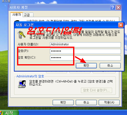 자동으로 로그인될 암호를 미리, 다시 입력 해줍니다
