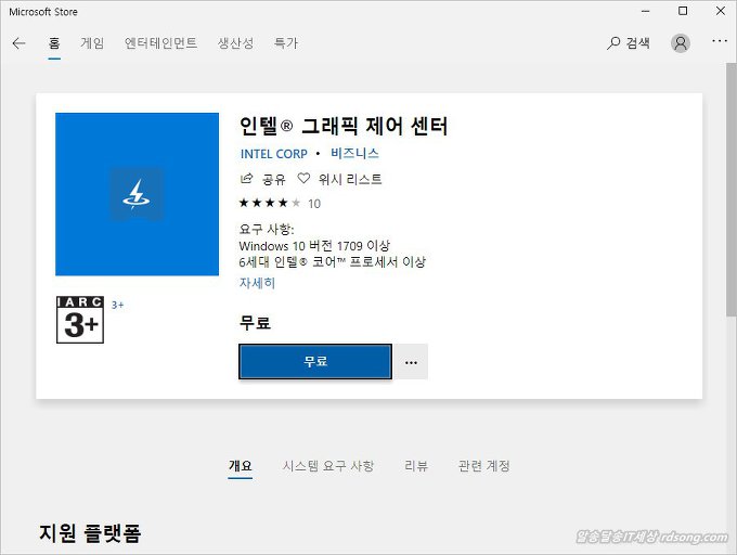 인텔 그래픽제어센터 마이크로소프트 앱 스토어 무료로 내려 받아 설치 해 봤습니다 여기에 업데이트 기능이 있지 않을까?