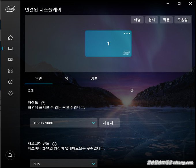 연결된 디스플레이 상태도 있고 해상도 변경 기능, 색 , 기타 정보 있습니다. 간단히 디스플레이 설정 변경 가능 합니다.