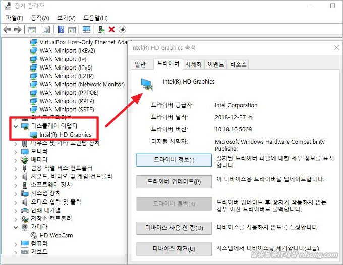 인텔 그래픽 카드 드라이버 최신 업데이트 적용하기
