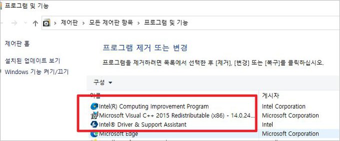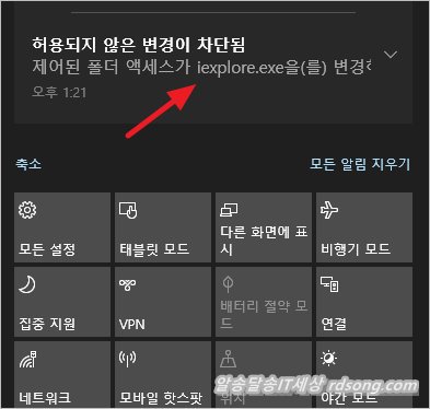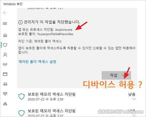 아래 처럼 윈도우 보안센터에서 iexplore.exe 변경 차단 하여 인텔 드라이버 자동 업데이트 불가