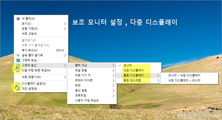 ■ 바탕화면에서 보조모니터 연결 다중디스플레이 직접 설정 제어 방법