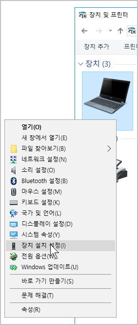 장치 설치 설정 을 선택해 보면 위와 동일한 결과를 보여 줍니다