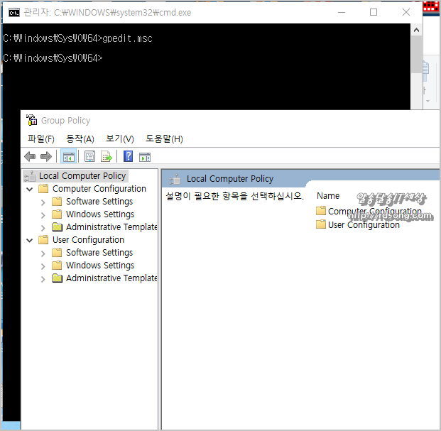 두번째: 로컬그룹정책 이용, 실행창을 열고, gpedit.msc 를 실행 해 봅니다