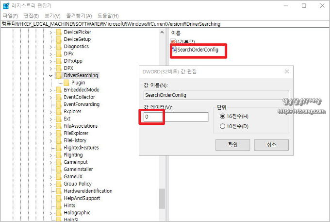 컴퓨터HKEY_LOCAL_MACHINESOFTWAREMicrosoftWindowsCurrentVersionDriverSearching