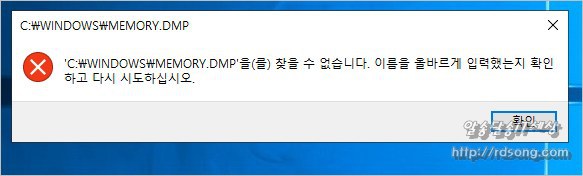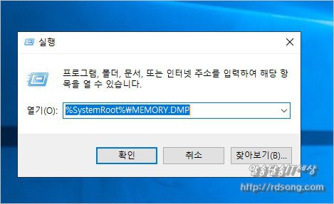 을 동시에 누르면 실행창이 뜨며 %SystemRoot%MEMORY.DUMP 를 입력하면 덤프 파일을 위치로 이동합니다