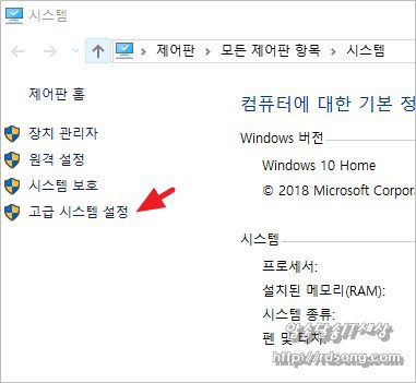 시스템에 오면 고급시스템 설정을 클릭하면 됩니다