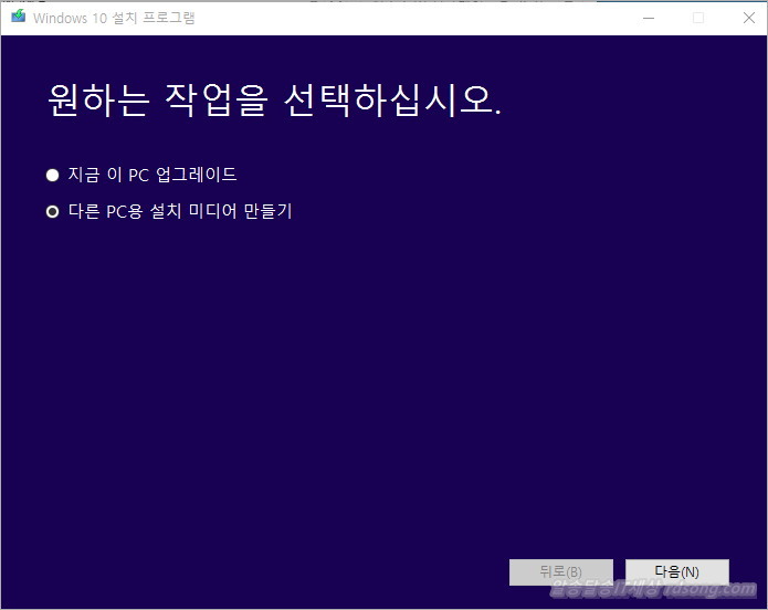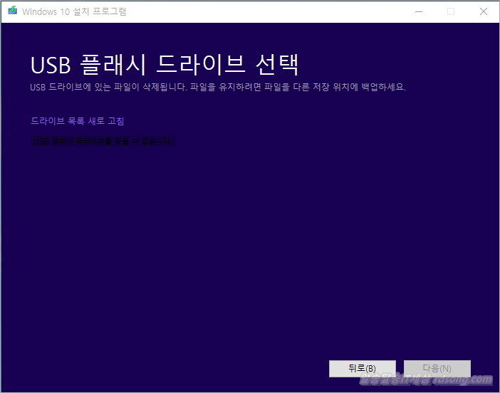 usb 메모리가 비어있는 것이 없어서 윈도우10 설치용 usb 미디어를 일단 만들지는 않았지만 단계별로 진행하면 됩니다