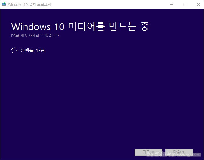 2. iso 파일을선택하여 윈도우 10 ISO 다운로드 하여 윈도우 10 iso파일을 생성하는 중입니다