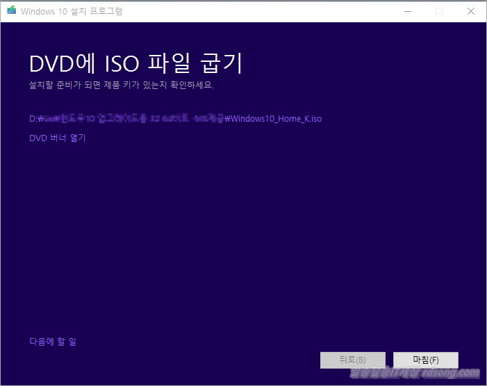 DVD에 iso파일 굽기 는 하지 않고,odd가 없기 때문에 그냥 마쳤습니다