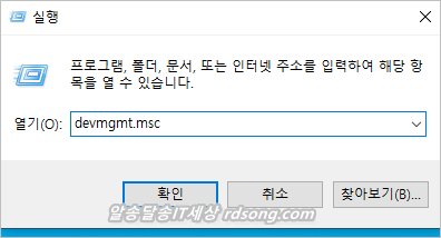 윈도우로고 + R 누르고 실행 창에 devmgmt.msc 입력 하고 엔터를 칩니다