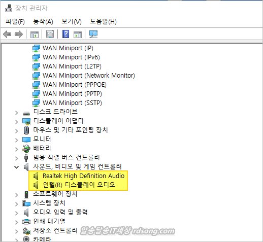 윈도우10 볼륨조절 할수 없을 때 사운드 장치를 모두 제거하고 다시 윈도우 재시작 해 주면 해결 됩니다. 만약 해결 되지 않을 경우 사운드 장치 드라이버 업데이트 시도 해 보시기 바랍니다.
