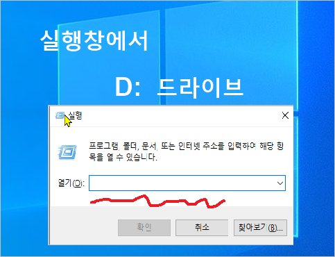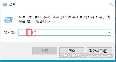 윈도우로고키+ R > d: 입력하고 엔터키 칩니다