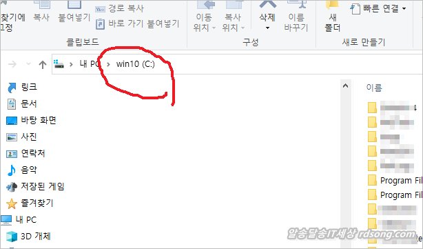 그러면 c: 드라이브 바로 뜨게 됩니다. 경로와 함께 폴더이름 입력 해 주면 해당 폴더로 바로 뜨게 되죠.