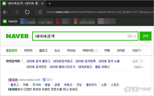예로 url 주소표시줄에 검색어 [네이버 검색]을 시도 해 보면 이렇습니다
