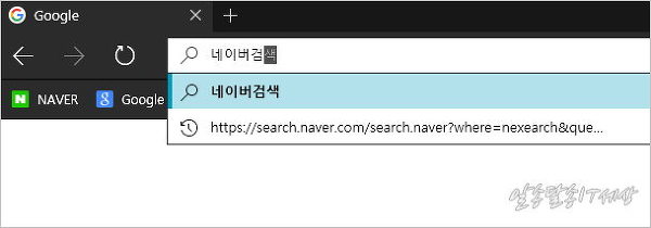 MS 엣지에서 주소표시줄에 검색어를 입력하면 네이버 검색