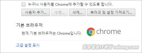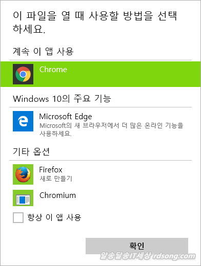 1.크롬을 기본브라우져로 설정해야 합니다 chrome앱을 계속 쓰도록 확인을 눌러 줍니다
