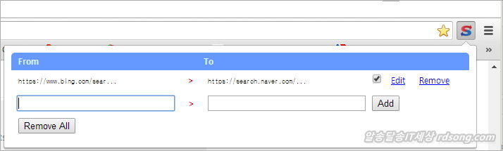 윈도우10 작업표시줄의 bing검색을 네이버검색(Naver)으로 바꾸는 크롬확장프로그램switchroo redirector