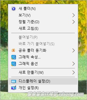 컴퓨터의 모든 글자크기, 바탕화면을 비롯하여 전체 글꼴의 크기를 변경하려면 디스플레이 설정에 가면 바로 변경이 됩니다