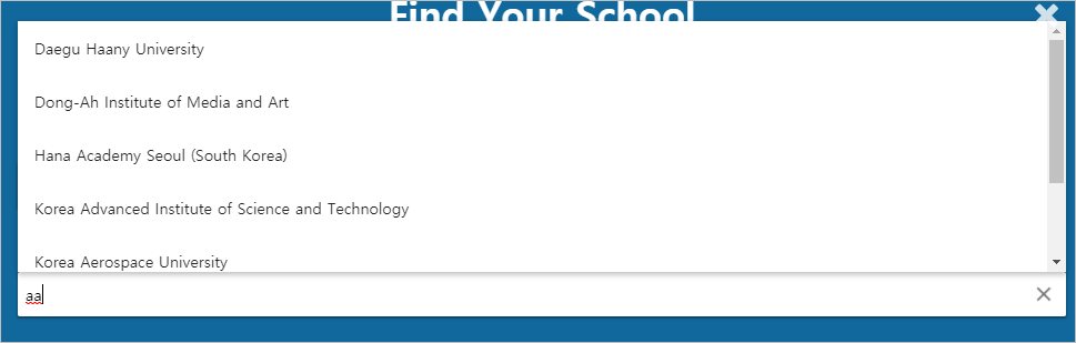 대학교 , 고등학교 , 초등학교, 교육관련쪽 검색이 되는데요.. 만약 여기에 등록되어 있지 않아 학교검색 되지 않으면 사용할수 없는 것이죠