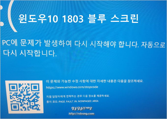 블루 스크린 도대체 왜 뜨는 건가? 윈도우10 1803 업데이트 후 갑작스럽게 특정한 어플리케이션을 실행하면 블루 스크린이 번쩍 떠서 PC 먹통이 되고 다시 재부팅이 된다