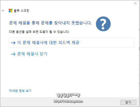윈도우10 에서 제공하는 문제 해결 팁 이용, 여기보면은 블루스크린 문제해결사 있다
