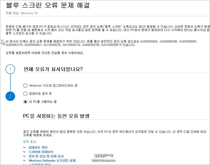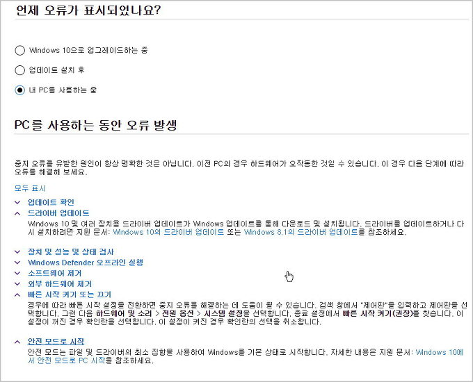https://support.microsoft.com/ko-kr/help/14238/windows-10-troubleshoot-blue-screen-errors