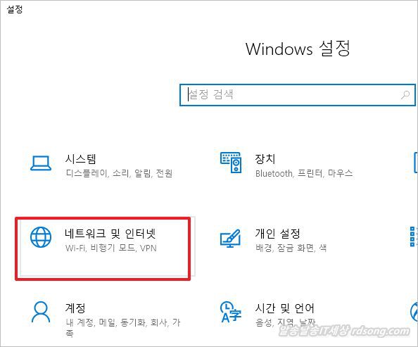 모든 설정에서 네트워크 및 인터넷으로 선택하여 들어 갑니다