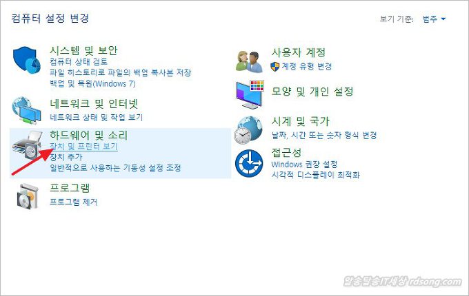 장치 및 프린터 보기 / 윈도우탐색기 또는 내PC를 열어 보면 좌측 하단에 제어판이 있습니다