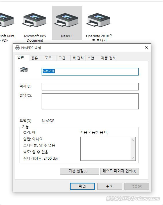 nespdf 프린터가 공유되어 있는 상태 입니다