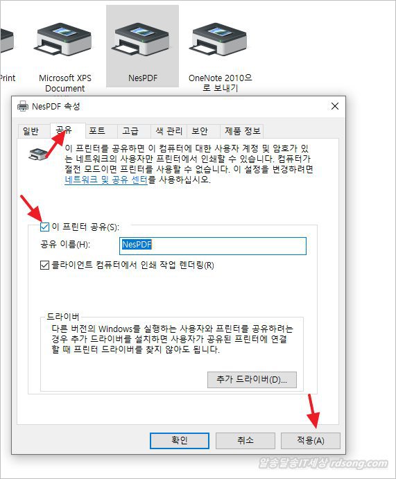공유할 프린터 nespdf란 프린터를 공유 해 봅니다,