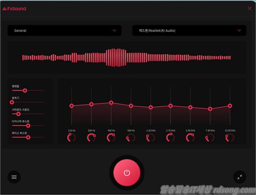 fx sound 하단 전원 버튼 누를 때, 끌 때 사운드 퀄리티 확실히 차이 나는 것을 알수 있습니다.