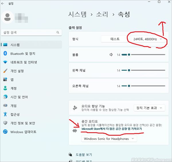 윈도우 11 노트북 소리 증폭 효과 아주 좋네요