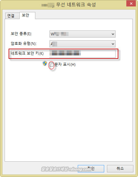 ▲윈도우8.1 무선 네트워크 속성에서 무선 와이파이 암호 변경